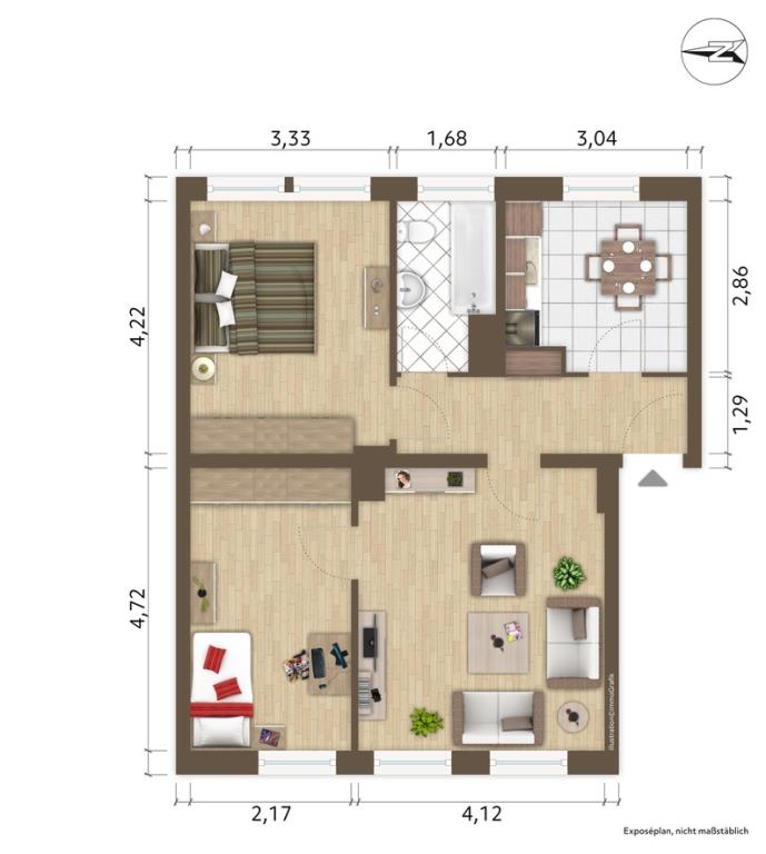Dieses Exposé stellt kein vertragliches Angebot dar. Für die Richtigkeit und Vollständigkeit der im Exposé enthalten Daten wird keine Haftung übernommen. Änderungen der Angebote sowie eine zwischenzeitliche Vermietung behalten wir uns vor.