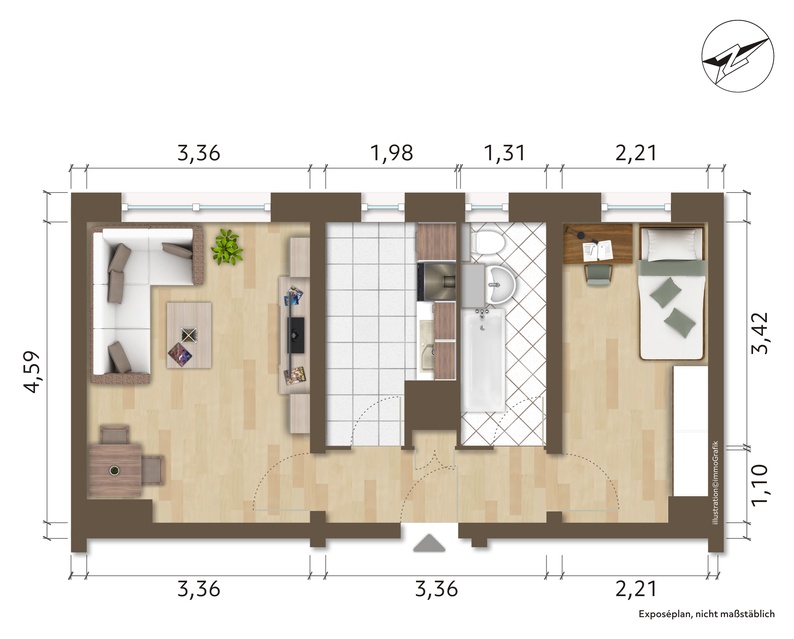 Dieses Exposé stellt kein vertragliches Angebot dar. Für die Richtigkeit und Vollständigkeit der im Exposé enthalten Daten wird keine Haftung übernommen. Änderungen der Angebote sowie eine zwischenzeitliche Vermietung behalten wir uns vor.