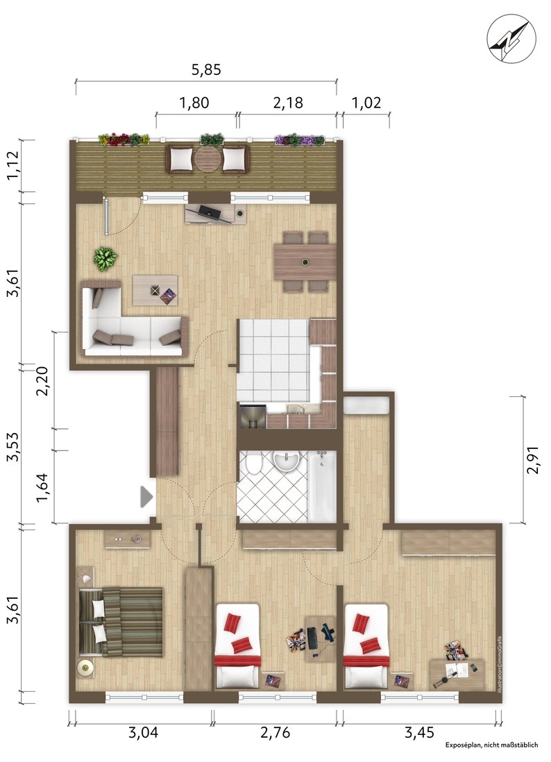 Dieses Exposé stellt kein vertragliches Angebot dar. Für die Richtigkeit und Vollständigkeit der im Exposé enthalten Daten wird keine Haftung übernommen. Änderungen der Angebote sowie eine zwischenzeitliche Vermietung behalten wir uns vor.