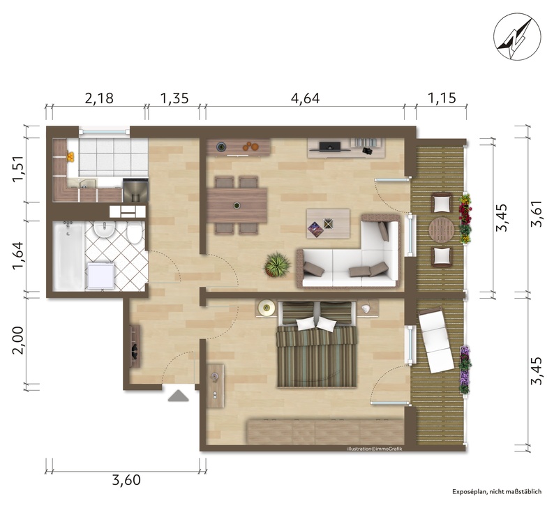 Dieses Exposé stellt kein vertragliches Angebot dar. Für die Richtigkeit und Vollständigkeit der im Exposé enthalten Daten wird keine Haftung übernommen. Änderungen der Angebote sowie eine zwischenzeitliche Vermietung behalten wir uns vor.
