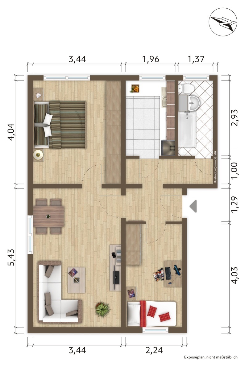 Dieses Exposé stellt kein vertragliches Angebot dar. Für die Richtigkeit und Vollständigkeit der im Exposé enthalten Daten wird keine Haftung übernommen. Änderungen der Angebote sowie eine zwischenzeitliche Vermietung behalten wir uns vor.
