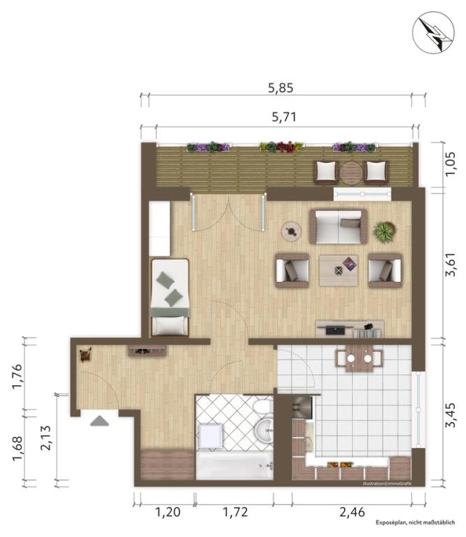 Dieses Exposé stellt kein vertragliches Angebot dar. Für die Richtigkeit und Vollständigkeit der im Exposé enthalten Daten wird keine Haftung übernommen. Änderungen der Angebote sowie eine zwischenzeitliche Vermietung behalten wir uns vor.