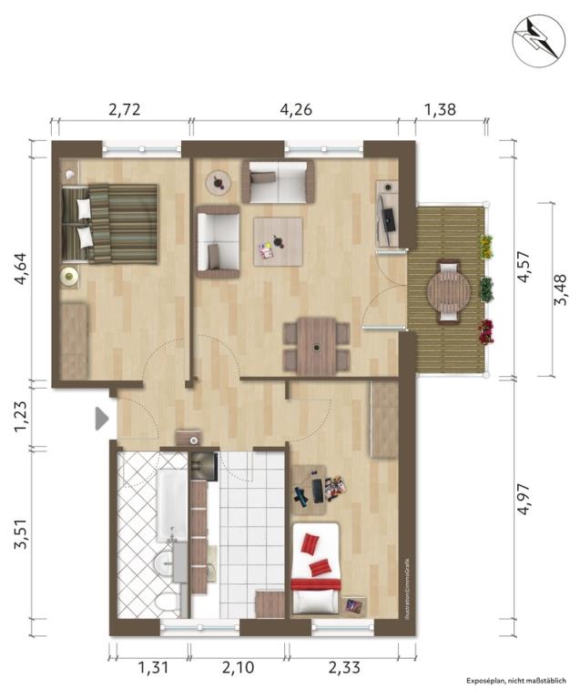 Dieses Exposé stellt kein vertragliches Angebot dar. Für die Richtigkeit und Vollständigkeit der im Exposé enthalten Daten wird keine Haftung übernommen. Änderungen der Angebote sowie eine zwischenzeitliche Vermietung behalten wir uns vor.