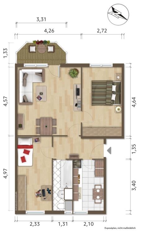 Dieses Exposé stellt kein vertragliches Angebot dar. Für die Richtigkeit und Vollständigkeit der im Exposé enthalten Daten wird keine Haftung übernommen. Änderungen der Angebote sowie eine zwischenzeitliche Vermietung behalten wir uns vor.