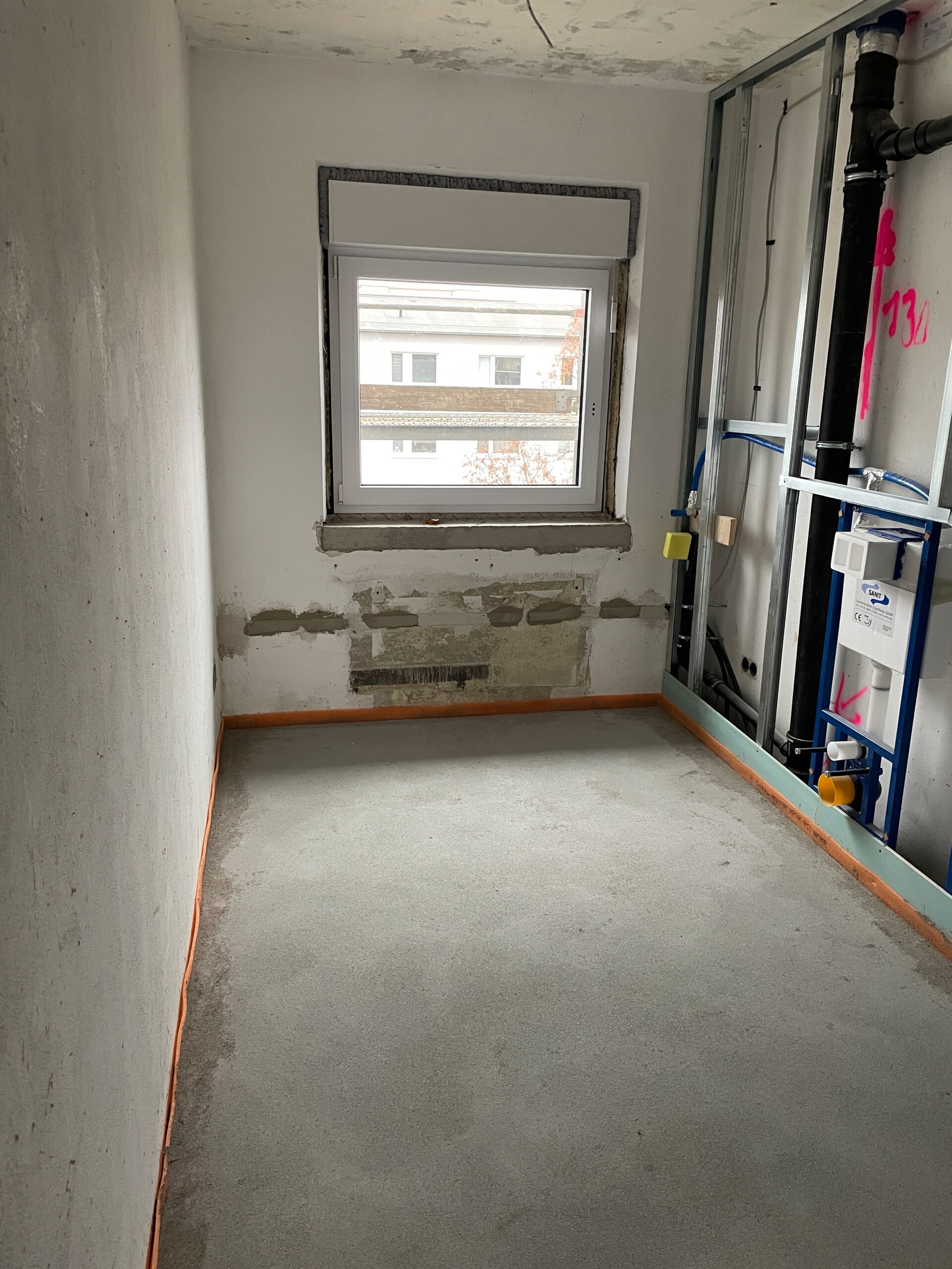 Das Gebäude J.-G.-Herder-Straße 21 - 29 ist komplett eingerüstet. Die umfangreichen Betonsäge- und Abbrucharbeiten sind abgeschlossen und der Einbau der neuen Fenster ist bis auf das Erdgeschoss Nr. 21 – 25 bereits erfolgt. Die Rohinstallationsarbeiten Heizung/Sanitär und Elektro sind in den Eingängen Nr. 27/29 zum Großteil erledigt.