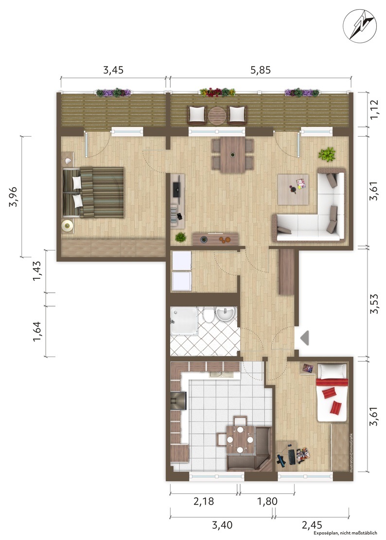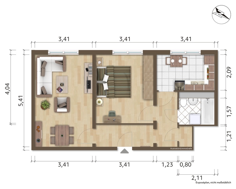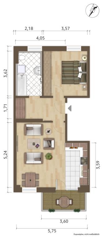 - Wohnflächeca. 57,55 m²